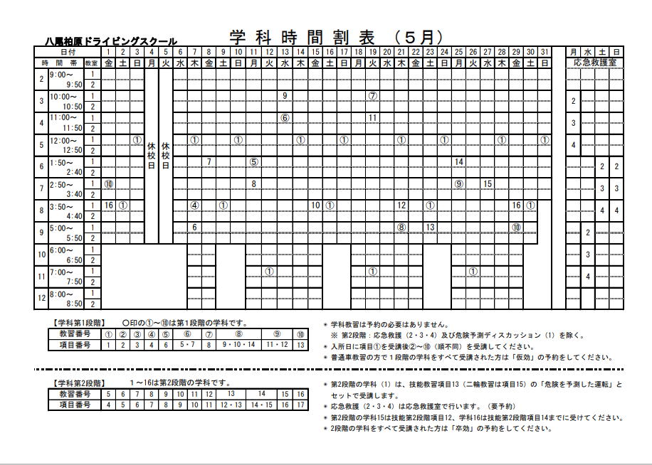 学科時間割表、2026年 5月分掲載しました。