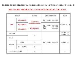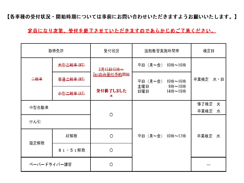 各車種受付状況について